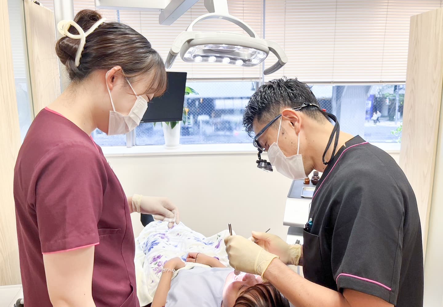 治療にあたっては患者さんとの信頼関係を築き、安心してお任せいただけることが何より大切です。例えばむし歯の治療ひとつにしても、保険適用、自費診療、治療方法、使用材料、いくつもの選択肢があります。当院では診断時のチェアタイム(患者さん一人あたりの治療時間)を長めにお取りし、じっくりとご納得いただけるように説明を行っています。